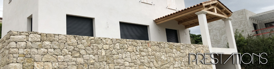 Maçonnerie : Réalisation de murs en béton armé, murs de soutènement, réalisation de murs en parpaings, ouvrages en pierres, fondations, construction de bâtiment, construction de terrasses, d'escalier, pose d’enduits, construction de maisons, piscine...